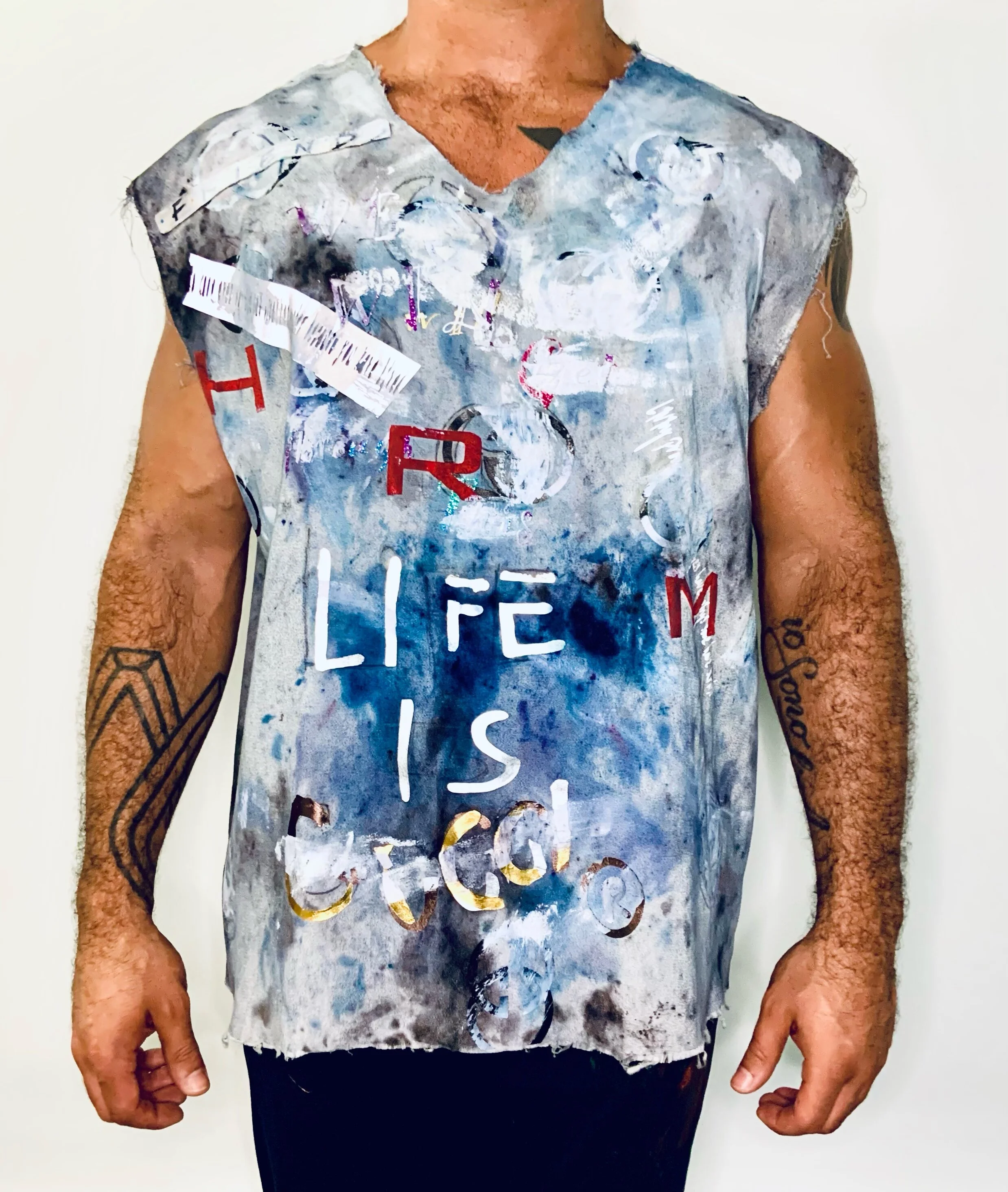 Hand-crafted elongated ice-dyed cotton shirt featuring thumbholed sleeves and scratched out Y-3 inspired vinyl applique with spray-painted HRM crown logo. Pre-shrunk. Machine washable. Available in size XL.
