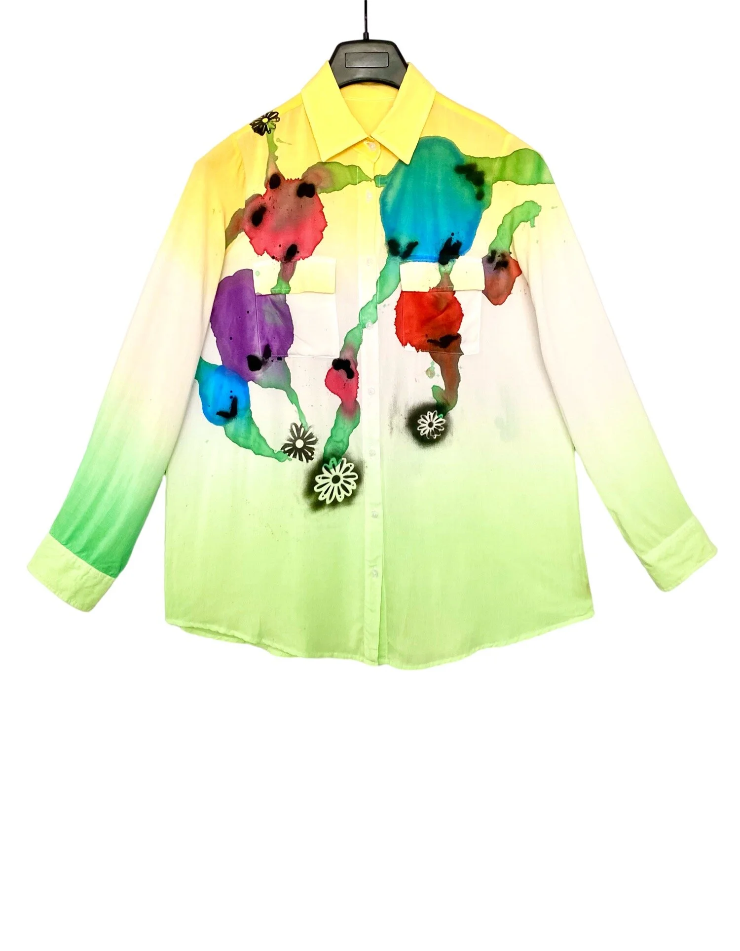 A stunning blend of sophistication and artistic craftsmanship, the HRMNEWYORK Hand-Painted Floral Shirt is a true statement piece. Crafted from luxurious cotton, this button-down shirt is adorned with a vibrant, hand-painted floral motif, bringing a touch of nature’s s beauty to your wardrobe.